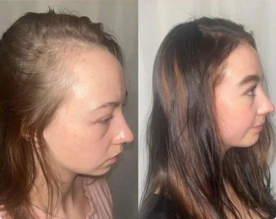 Andrea integró el Aceite de Batana en su rutina capilar diaria y, con el tiempo, notó una mejora notable en la textura y el volumen. Su cabello ahora luce con mayor cuerpo y vitalidad, especialmente en la línea frontal.