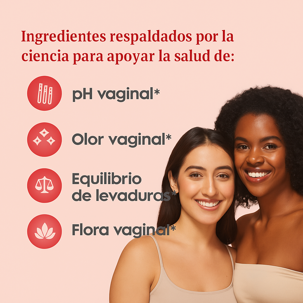 Contiene cepas probióticas con respaldo científico para flora vaginal equilibrada.